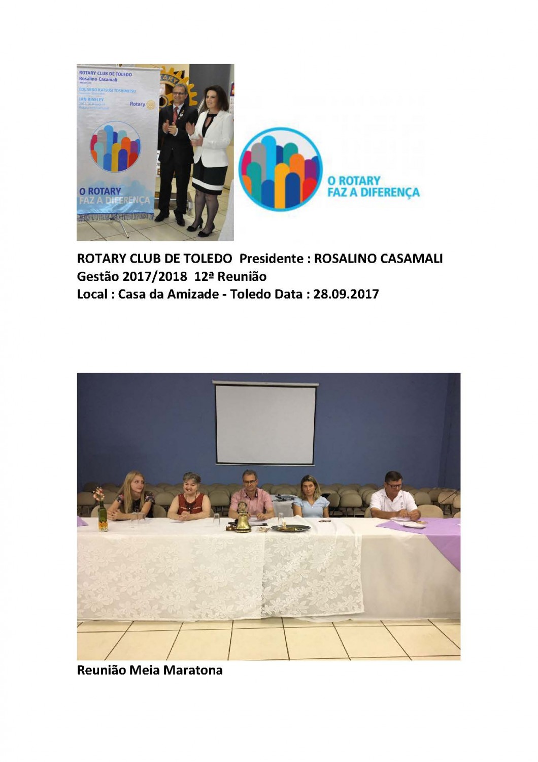 12ª REUNIÃO DA 16ª MARATONA ROTARY CLUB DE TOLEDO, ULTIMA ANTES DO EVENTO QUE SERÁ EM 08/10/2017, AJUSTES FINAIS