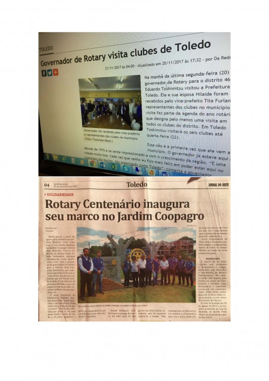 VISITA OFICIAL DO CASAL GOVERNADOR EDUARDO E HILAIDE, REUNIÃO EM CONJUNTO COM O ROTARY CLUB DE TOLEDO CENTENARIO, PLANTIO DE ARVORE, ASSEMBLEIA COM O GOVERNADOR E INAUGURAÇÃO DO MARCO ROTARIO DO ROTARY CLUB DE TOLEDO CENTENARIO